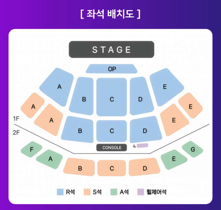 - 휠체어석: 휠체어석은 기획사를 통한 전화 예매만 가능하며, 동반인도 반드시 티켓을 구매해야 합니다.
